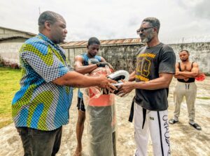 Le dernier cité a offert à la ligue du Woleu-Ntem : 8 sacs de frappe, les paires de gants, les dentiers, les cordes et d’autres accessoires de matériels de ladite discipline. Alors qu’un nouveau ring de compétition a été offert par la Fédération gabonaise de boxe à la ligue du « G9 ».