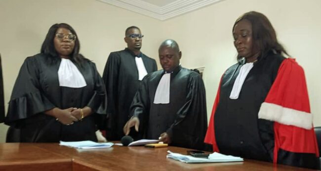 LA salle d’audiences de la Chambre provinciale des comptes d’Oyem (au nord du Gabon) a servi de cadre, le jeudi 14 décembre 2023, à la cérémonie de prise des charges de l’auditeur supérieur, Robi Raïno Dell Ngandzou, des auditeurs, Serge Claver Édouard Nzeng et Serge Olivier Ngowyet Yann, et du greffier en chef adjoint, Josiane Danye Ekahba Nguema Ndong Nkouna, récemment promus au sein de cette juridiction.