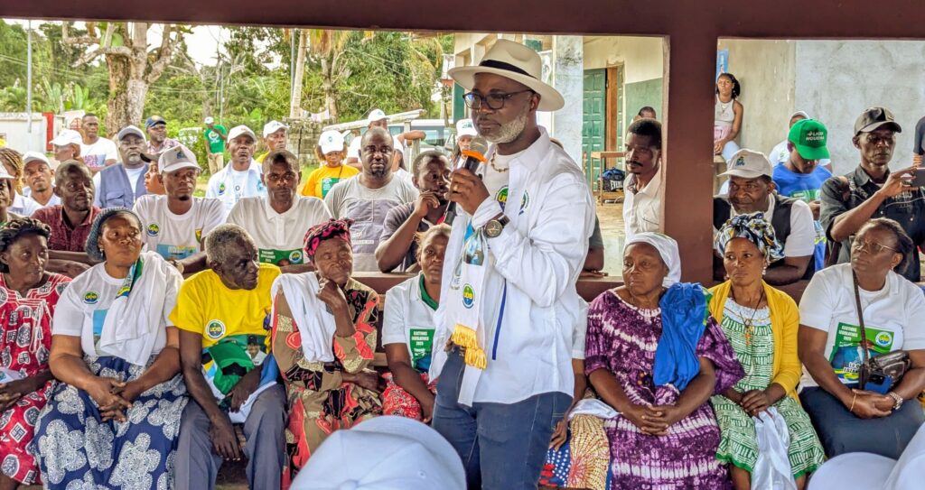 POURSUIVANT leur campagne de proximité auprès des populations du 2e arrondissement de la commune d’Oyem, Chen Sylvestre Mezui M’Obiang et Kevin Eric Edzang Ndong Nkoulou, respectivement tête de liste aux locales et candidat aux législatives à venir pour le compte de l’Union démocratique des bâtisseurs (UDB), étaient hôte des habitants quartiers Ewot-Bouloungou, Ewot-Aéroport, Mfoul, Adzabilone, Sablière, Ndamva et hôpital canadien, le mardi 23 septembre 2025.