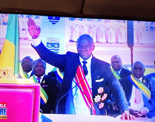 Aussi, la main gauche posée sur la Constitution et la main droite levée devant le drapeau national et le peuple, le nouveau président du Gabon a-t-il prononcé la formule suivante : « Moi, Brice Clotaire Oligui Nguema, élu président de la République, m’engage devant Dieu, nos ancêtres et le peuple gabonais, à conserver toutes mes forces à son bien-être, à le protéger de tout dommage, à respecter et à défendre fidèlement la Constitution et l’État de droit, à préserver les acquis démocratiques, l’indépendance de la Patrie, l’intégrité du territoire national, à remplir consciencieusement les devoirs de ma charge et à être, juste envers tous. Je le jure ».