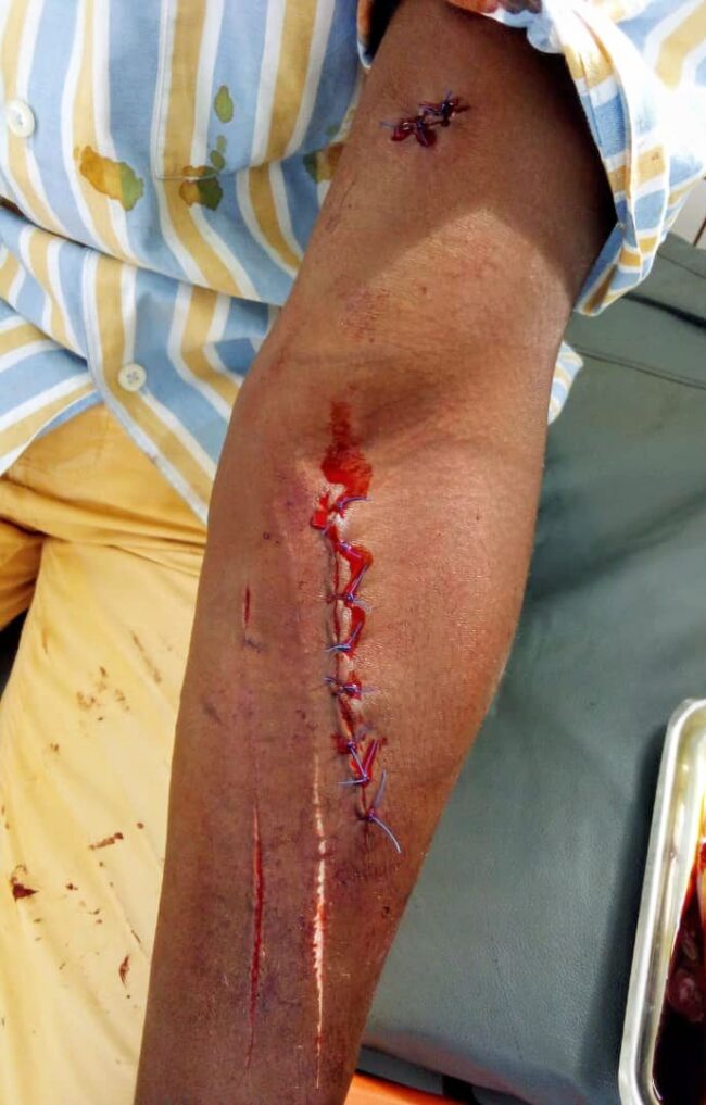 L’enseignant s’en est tiré avec des graves blessures au niveau des deux bras. Conduit urgemment dans une structure de santé de la place, il a eu droit à plusieurs points de suture et d’une incapacité de plusieurs jours.