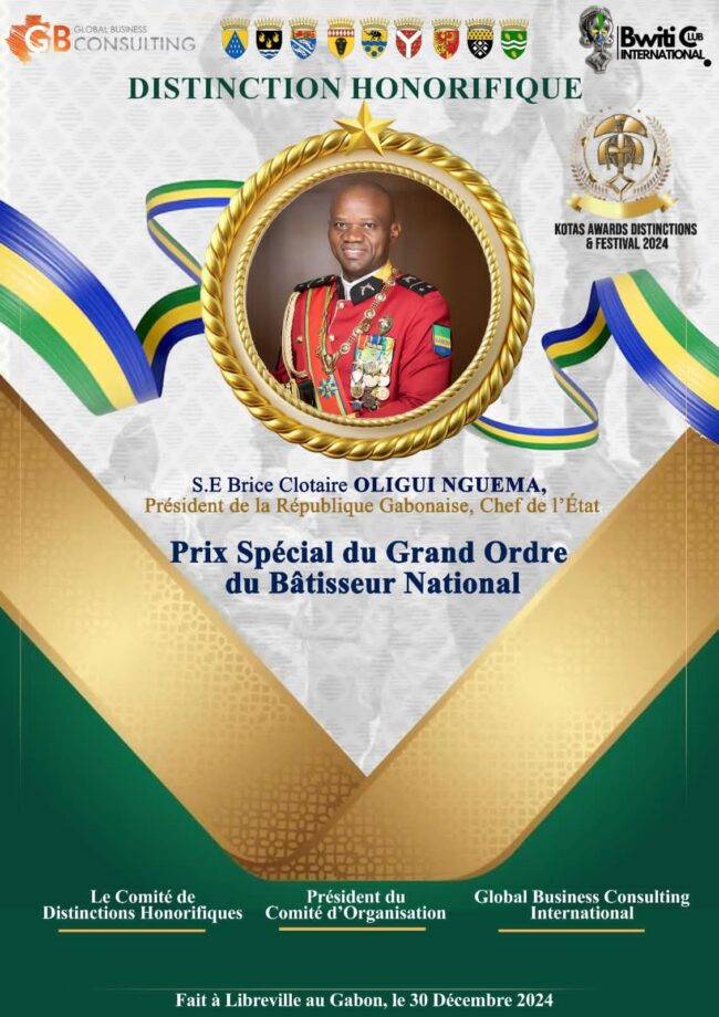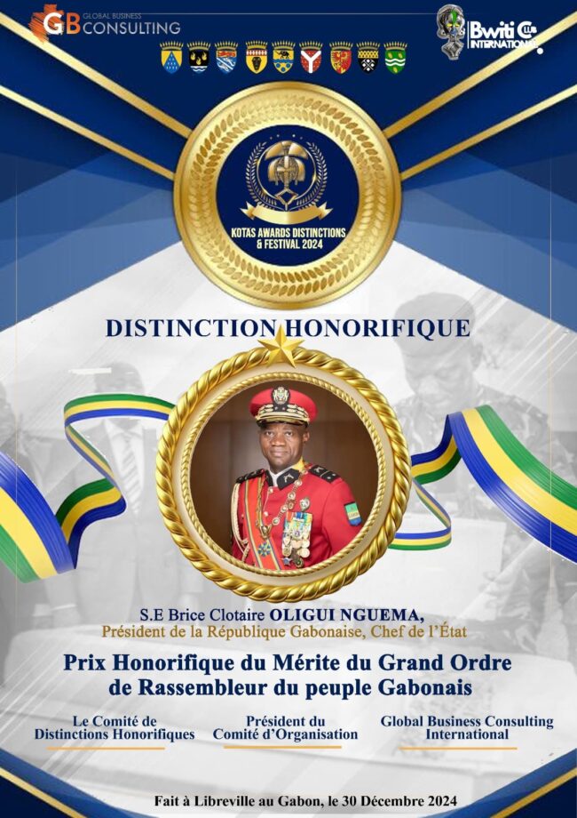 Parmi eux, il y a le président de la Transition, chef de l’État, le général de brigade Brice Clotaire Oligui Nguema, par ailleurs parrain dudit événement, qui recevra deux distinctions honorifiques. Il s’agit respectivement du « Prix spécial du Grand Ordre » et le Prix honorifique du Mérite du Grand Ordre de rassembleur du peuple gabonais ».