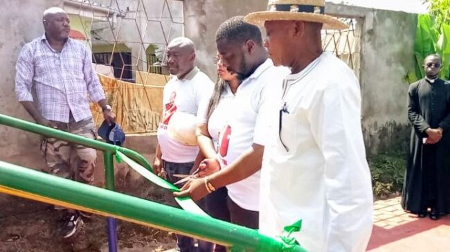 Cette infrastructure sociale a été réalisée par l’ONG « Tous ensemble pour l’égalité des chances », dont le président est Patrick Bernard Mba Nze.