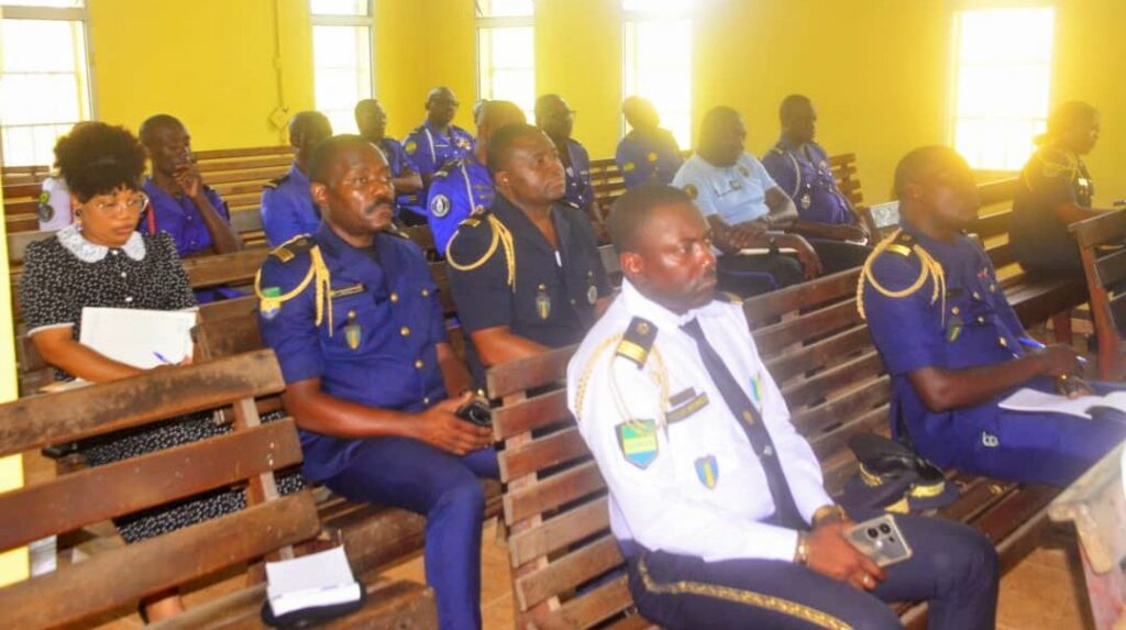 LA salle d’audiences du tribunal de première instance d’Oyem (nord du Gabon) a servi de cadre, le vendredi 12 décembre 2025, à la rencontre entre le Procureur général (PG) près la Cour d’appel judiciaire d’Oyem, Juste Ambourouet Ogandaga, avec les Officiers de police judiciaire (OPJ) en service dans les cinq départements du Septentrion : Ntem (Bitam), Okano (Mitzic), Haut-Ntem (Minvoul), Haut-Como (Medouneu) et Woleu (Oyem).
