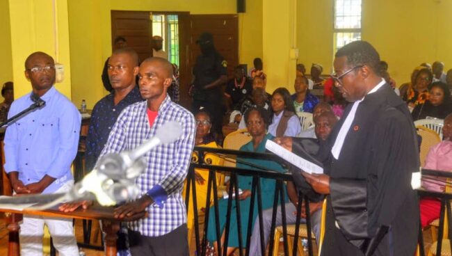 Au terme d’une audience « houleuse et indécise » dirigée par le président de céans, Ebang Ondo Eyi, les mis en cause ont été reconnus coupables des faits qui leurs sont reprochés, avant d’être condamnés respectivement, à 20 ans de réclusion criminelle et 10 millions d’amende chacun (pour Lewis Arsène Bekui Ebang et Laurent Asseko Ella) et à 10 ans et 500 mille de dommages et intérêts (pour Rodrigue Allogo Assoumou), ce, en application des dispositions des articles 278 et 250 du code pénal.