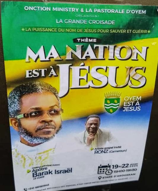 C’EST ce jeudi 19 décembre 2024 (de 15 h à 19h30), que débute au stade provincial d’Akoakam d’Oyem, chef-lieu de la province du Woleu-Ntem (nord du Gabon), la grande croisade organisée par l’église de réveil « Onction Ministry » en partenariat avec l’église locale « La Pastorale », sous le thème : « Ma nation est à Jésus ».