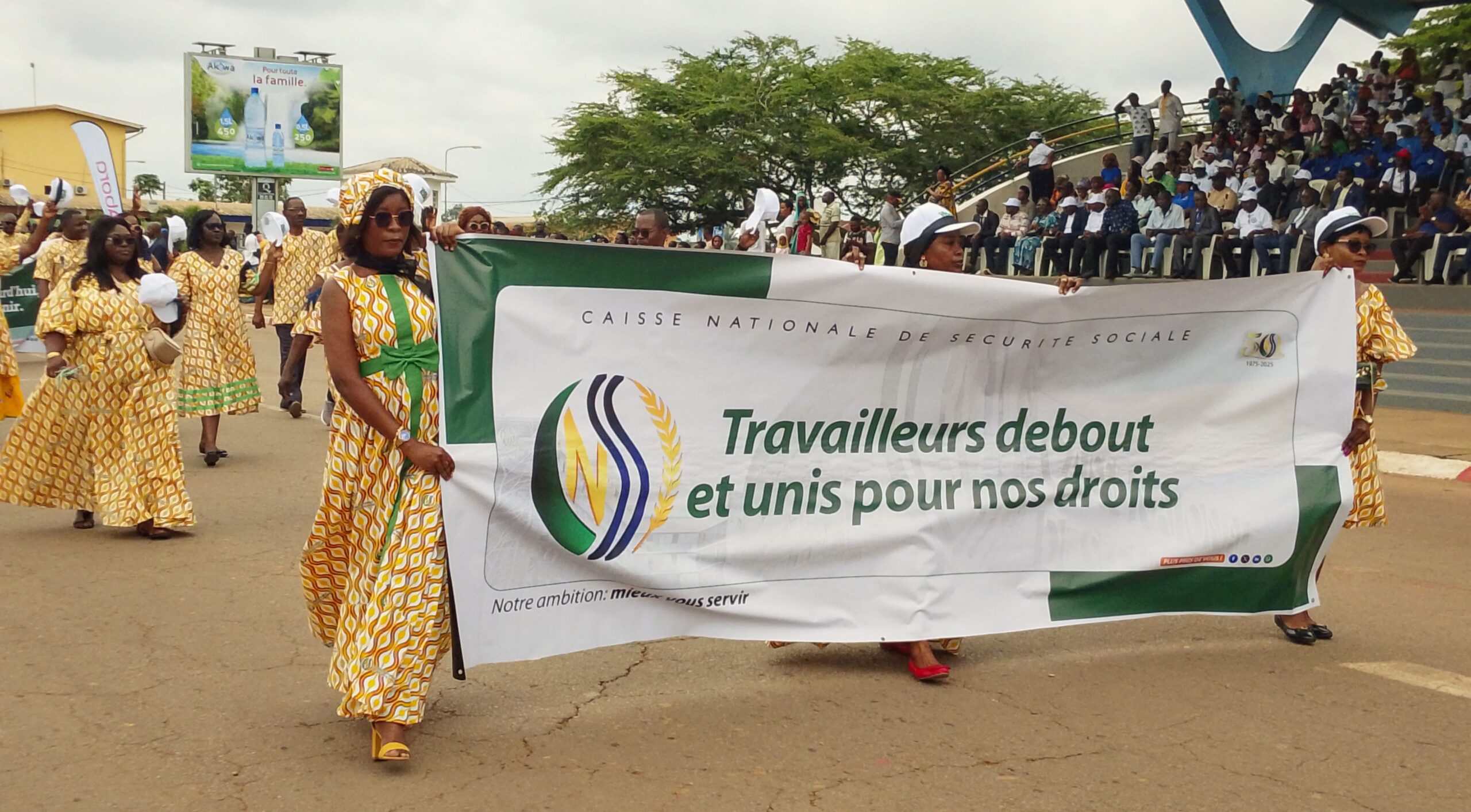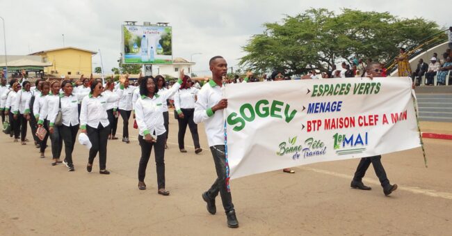 Les travailleurs des secteurs public, parapublic et privé ont défilé devant la tribune officielle du chef-lieu de la province du Woleu-Ntem, où avait pris place le préfet du Woleu, Brice Arcadius Moussirou, et les autorités administratives et militaires de la localité.
