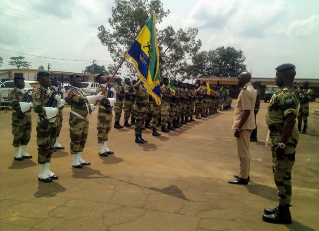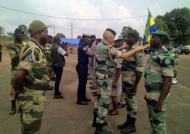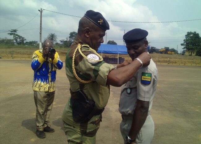 LA place d’armes du camp militaire d’Eyenassi, dans le 2e arrondissement de la commune d’Oyem, chef-lieu de la province du Woleu-Ntem (nord du Gabon), a servi de cadre, le samedi 11 janvier 2025, à la cérémonie de porte d’insignes de grades aux 25 militaires du deuxième bataillon d’infanterie de la Région militaire terrestre nord (RMTN) et 3 agents du détachement de la Garde républicaine (GR) à Oyem, promus aux grades supérieurs à compter du 1er janvier de cette année.