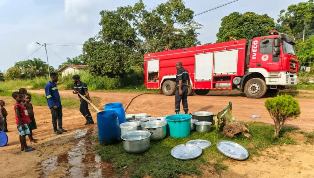 Cette action sociale et de solidarité envers des habitants des quartiers en manque de cette source de vie, a été posée par les agents de la 9e Compagnie d’incendie et de secours d’Oyem, dirigée par son commandant, le capitaine Evrard Bakita Mbadinga.